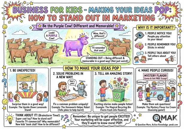 Imagine you’re in a room full of brown cows (weird, right?). Suddenly, you see a bright purple cow! Which one would you remember? The purple one, of course! That’s what standing out is all about – being different and memorable in a good way.