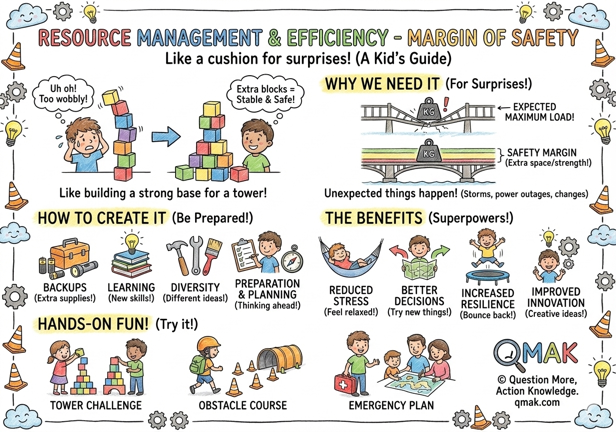 A margin of safety is like a buffer or a cushion that we build into things to help protect them from unexpected events or challenges.