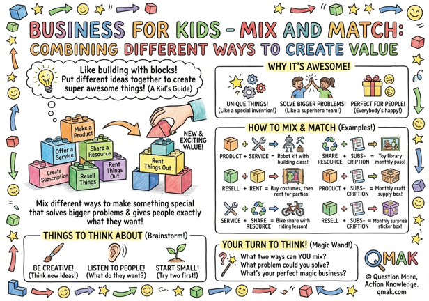 Mix and Match is like playing with building blocks. You can take different pieces (in this case, different ways of creating value) and put them together to make something new and exciting!