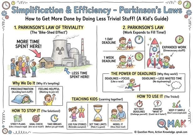 In this article, we’ll explore Parkinson’s Law of Triviality and Parkinson’s Law, their implications for productivity, and strategies for harnessing their insights for personal growth and achievement. We’ll also discuss potential approaches for introducing these concepts to children, helping them develop the skills and mindset needed to navigate the challenges of productivity in an increasingly complex world.