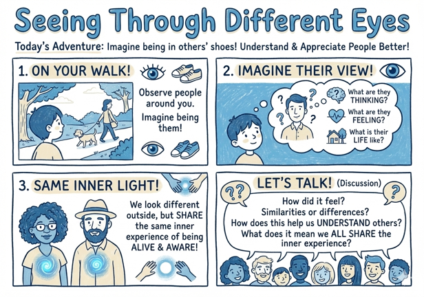 5. As you continue your walk, have the child repeat this exercise with different people they see, imagining themselves in others’ shoes and considering the shared human experience.