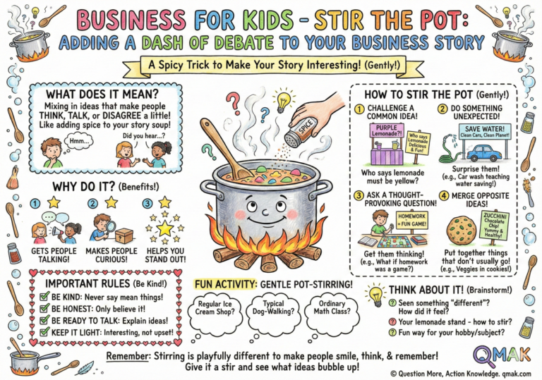When you’re cooking soup, you stir the pot to mix all the flavors. In marketing, “stirring the pot” means mixing in ideas that might make people think, talk, or even disagree a little. It’s like adding a dash of spice to your business story!