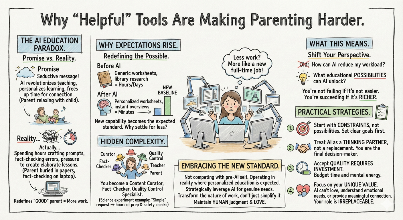 Welcome to the AI education paradox: tools designed to make parenting easier are actually raising the bar for what we think we should accomplish with our children.