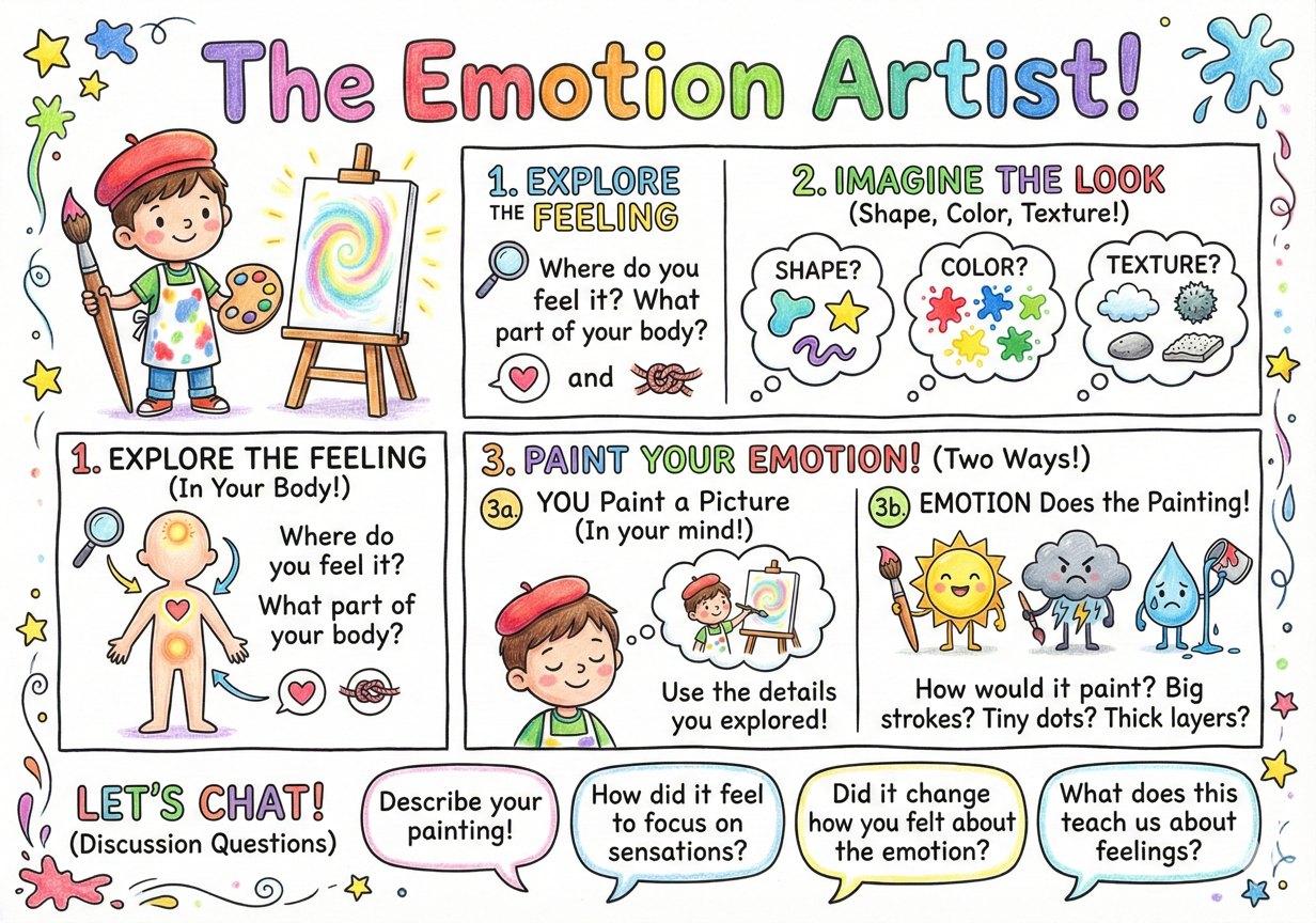 By focusing on the physical sensations and qualities of their emotions, children learn to recognize and describe their inner experiences without judgment.