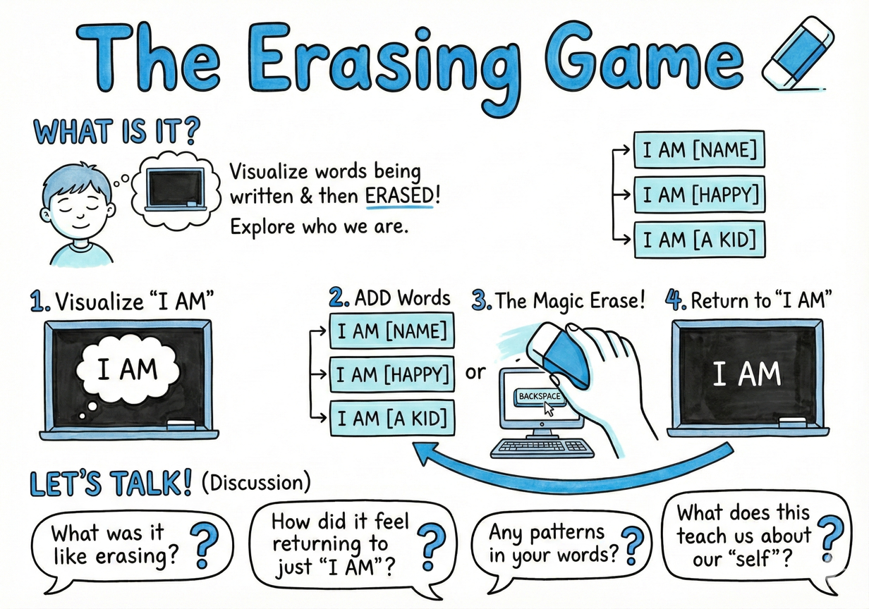 5. Now, ask the child to imagine erasing the words they just added, leaving only “I am.” If they visualized typing on a computer screen, they can imagine using the backspace key to erase the added part.
