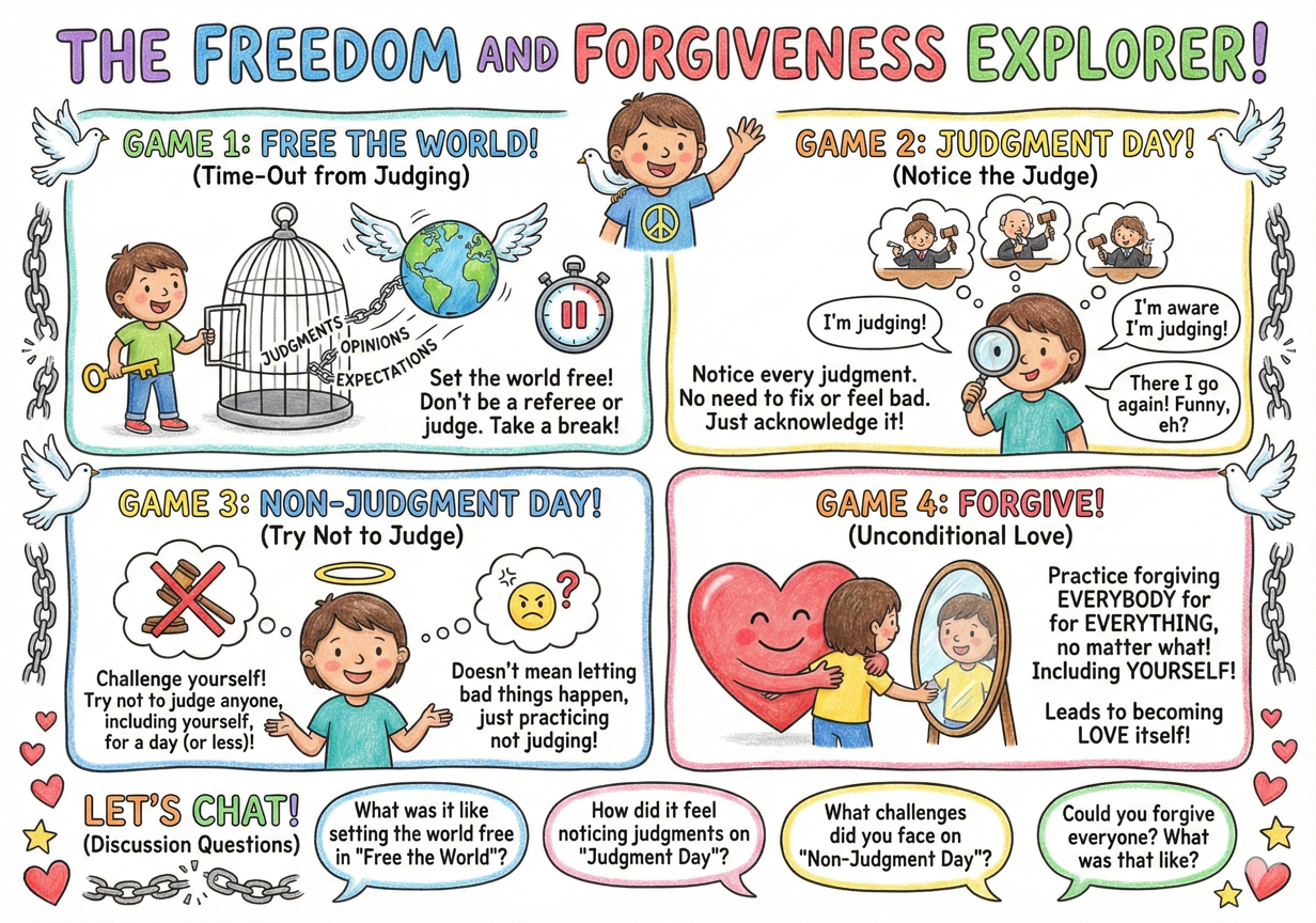 – Encourage the child to think about how they can set the world free from their judgments, opinions, and expectations.