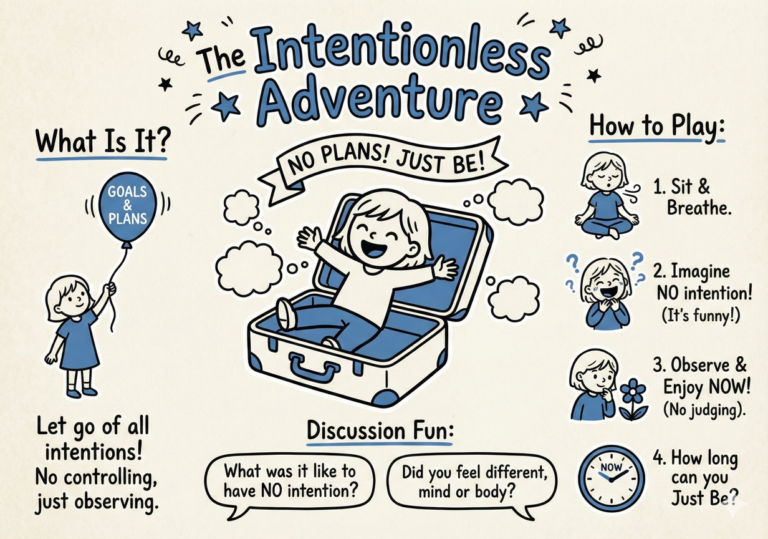 2. Ask the child to imagine what it would be like to have no intention at all. Encourage them to let go of any goals, plans, or desires they might have, even if it feels a bit strange or funny.