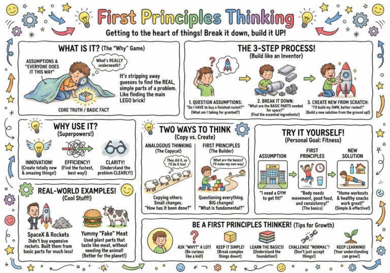 First Principles Thinking is a crucial skill for learners of all ages. By embracing this approach, you can develop a deeper understanding of the world around you, make more informed decisions, and unleash your creative potential. In this article, we’ll explore the essence of First Principles Thinking and how you can harness its power for personal growth and success.