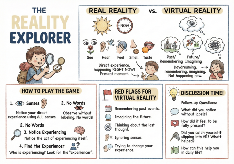 1. Explain to the child the difference between direct experience (real reality) and virtual reality (daydreaming, fantasizing, mulling over, and most automatic thinking).