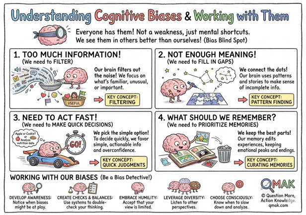 They’re not a sign of weakness or stupidity. From Nobel Prize-winning scientists to everyday decision-makers, we all use these mental shortcuts. The key difference isn’t whether we have biases (we all do), but whether we’re aware of them and can recognize when they might be influencing our judgment.
