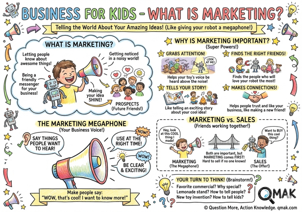 Well, marketing is like giving your robot a megaphone and teaching it how to make friends.  Let’s explore this exciting part of business!